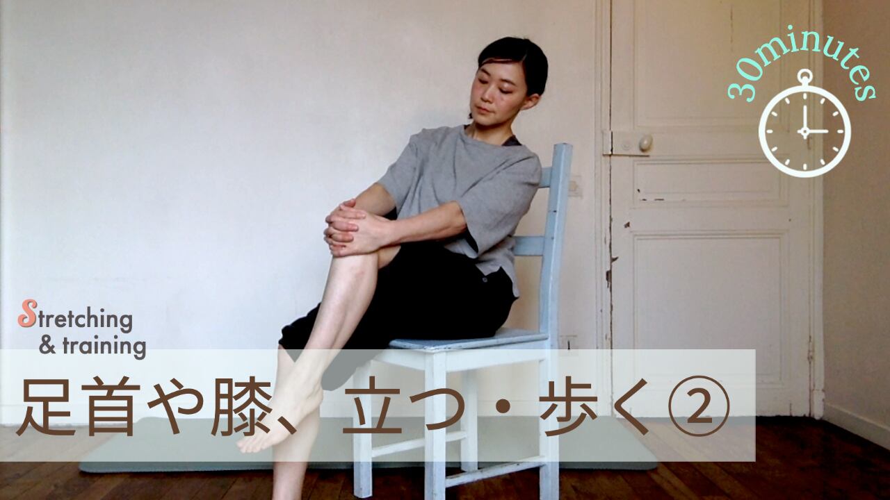 足の裏から足首、膝や腿にかけてストレッチ&トレーニングをします。